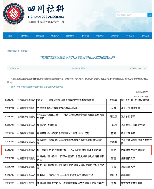 【立项简介】常荣老师四川省社科联“推进文旅深度融合发展”社科普及专项活动
